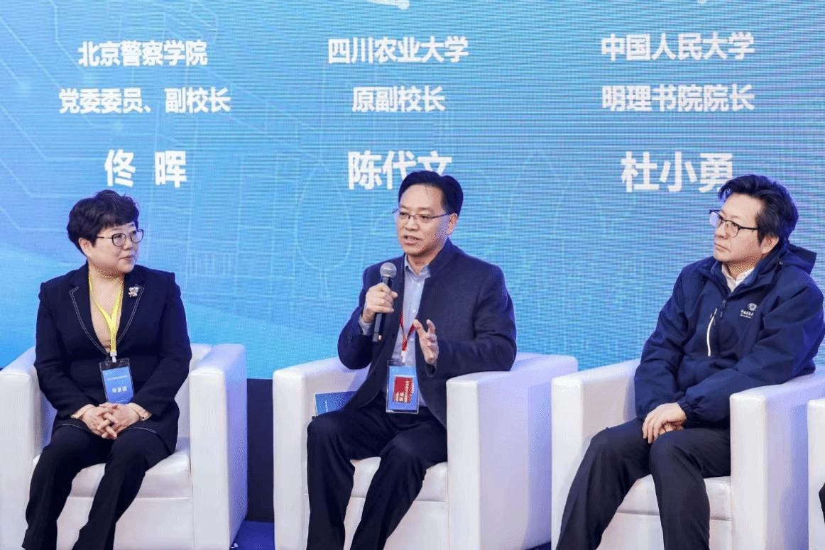 会议还同期举行了圆桌会议,我校陈代文教授与北京警察学院副校长佟辉、中国人民大学明理书院院长杜小勇、西安电子科技大学尚荣华等共同围绕“人工智能赋能基层教学组织建设”展开交流。陈代文教授就虚拟教研室的运行机制提出独到见解,指出突破利益机制壁垒是保障虚拟教研室良好运行的关键,并强调须通过体制机制创新进一步扩大虚拟教研室的影响力。