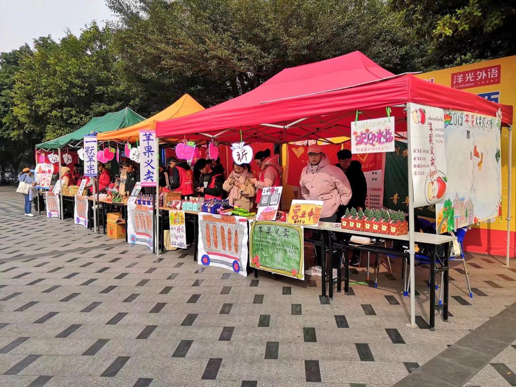 12月8日至12月23日期间,九大学院志愿者通过线上自媒体推送、教室三分钟宣讲,校内快闪表演等方式,在校内开展活动宣传,同时于成都校区进行线下设点苹果售卖。相比往年,活动主办方根据学生不同需求新推出了“祈福款”、“表白款”“心愿款”“寝室款”等特色苹果套餐,取得了购买学生的一致好评。本次活动取得了学校老师的支持,动物科学专业系主任张红平老师了解活动公益性质后,为动物科学专业所有2019级新生购买了苹果。