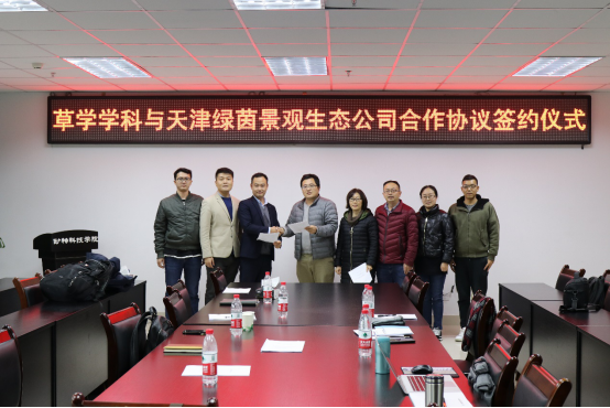 12月1日,天津绿茵景观生态建设股份有限公司(以下简称“绿茵生态”)市场部及研发部负责人一行来到我院,就草种质资源创新与育种、草地生态、草坪管理、草坪草生长调控剂研发等方面进行科技创新和技术研发等洽谈合作事宜。草学系主任马啸教授、彭燕教授、刘琳教授、刘伟副教授、李州副教授及学生代表程碧真博士等草学系师生参加座谈会。