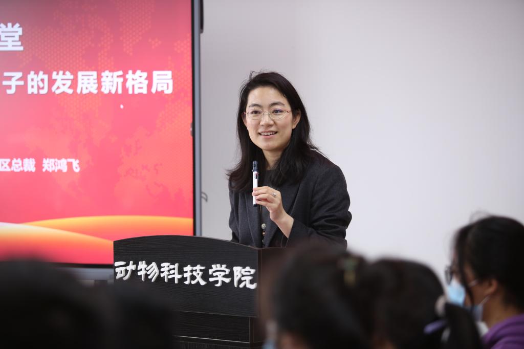 奖学金设立仪式结束后,嘉吉投资(中国)有限公司动物营养中国区总裁郑鸿飞继续参加了动科大讲堂活动,为近100名学生做了题为《农业现代化下当代农牧学子的发展新格局》的讲座。