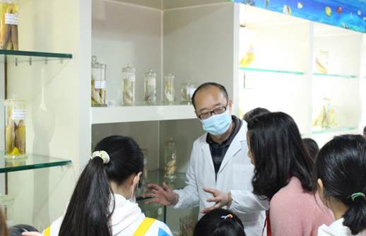 3月27日,在学院团委青年志愿者工作部的邀请和组织下,成都市温江区公平小学的师生共30余人来到tyc522cc太阳成集团主页长江上游特有鱼类标本馆参观。水产系杨世勇副教授和3位研究生热情带领各位小朋友参观了标本馆,详细介绍了标本馆内展览的各种特色鱼类标本,小朋友们也跟着杨老师兴致勃勃的参观了标本室,并对自己感兴趣的鱼类和问题进行了请教,每个小朋友都认真听讲并积极做笔记,表示收获良多,对鱼类及水产有了更多更新的认识。