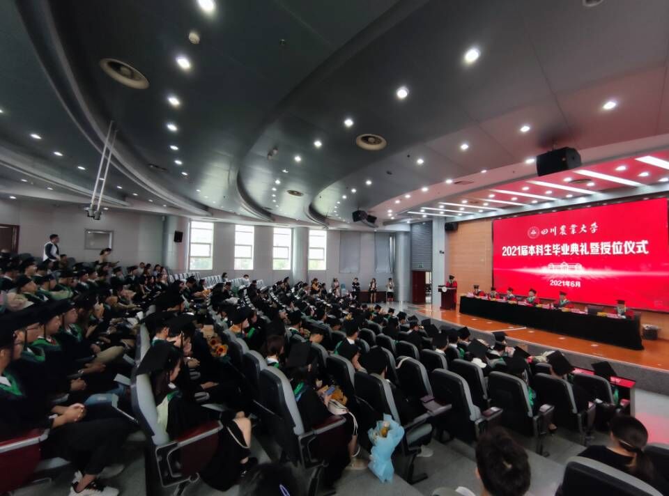 6月11日上午,我院2021届学生毕业典礼暨学位授予仪式在二教报告厅隆重举行。副校长李明洲、学院院长李学伟、党委书记付瑞琼,营养所党委书记钟邦胜,学院副院长王继文、党委副书记朱砺、水产系主任姜俊参会并为毕业生授位。
