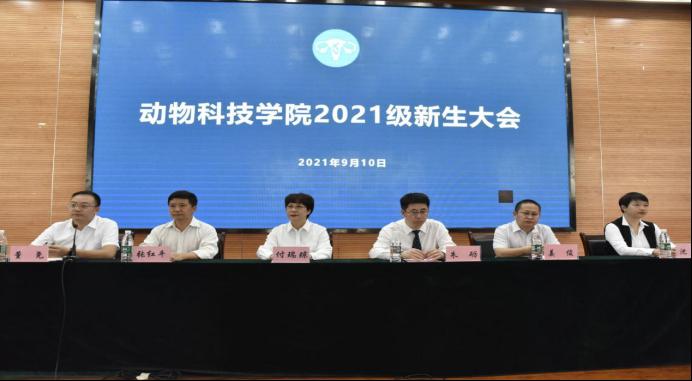 秋风送爽,丹桂飘香,9月10日下午,suncitygroup太阳成集团tyc522cc太阳成集团主页2021级本科生新生大会在第二教学楼学术报告厅顺利举行。学院院长朱砺教授、院党委书记付瑞琼副教授、动物科学系主任张红平教授、水产养殖系主任姜俊教授、院行政办公室主任沈蕾、院党委办公室主任董尧、全体新生班主任、辅导员、班主任助理以及2021级264名新生出席本次大会。大会由董尧主持。