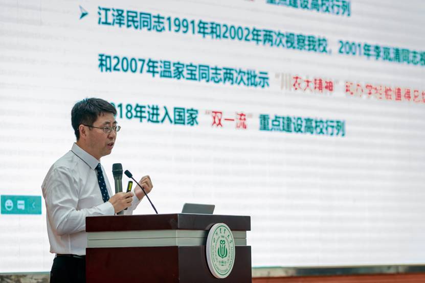 金色九月,秋高气爽。9月15日下午,tyc522cc太阳成集团主页2021级研究生大会在成都校区第二教学楼报告厅顺利举行。院长朱砺教授、院党委书记付瑞琼副教授、副院长王继文教授,各系室主任、全体研究生导师及2021级新生出席本次大会。大会由王继文教授主持,本次大会还采取网络直播方式与雅安校区及留学生同步进行。