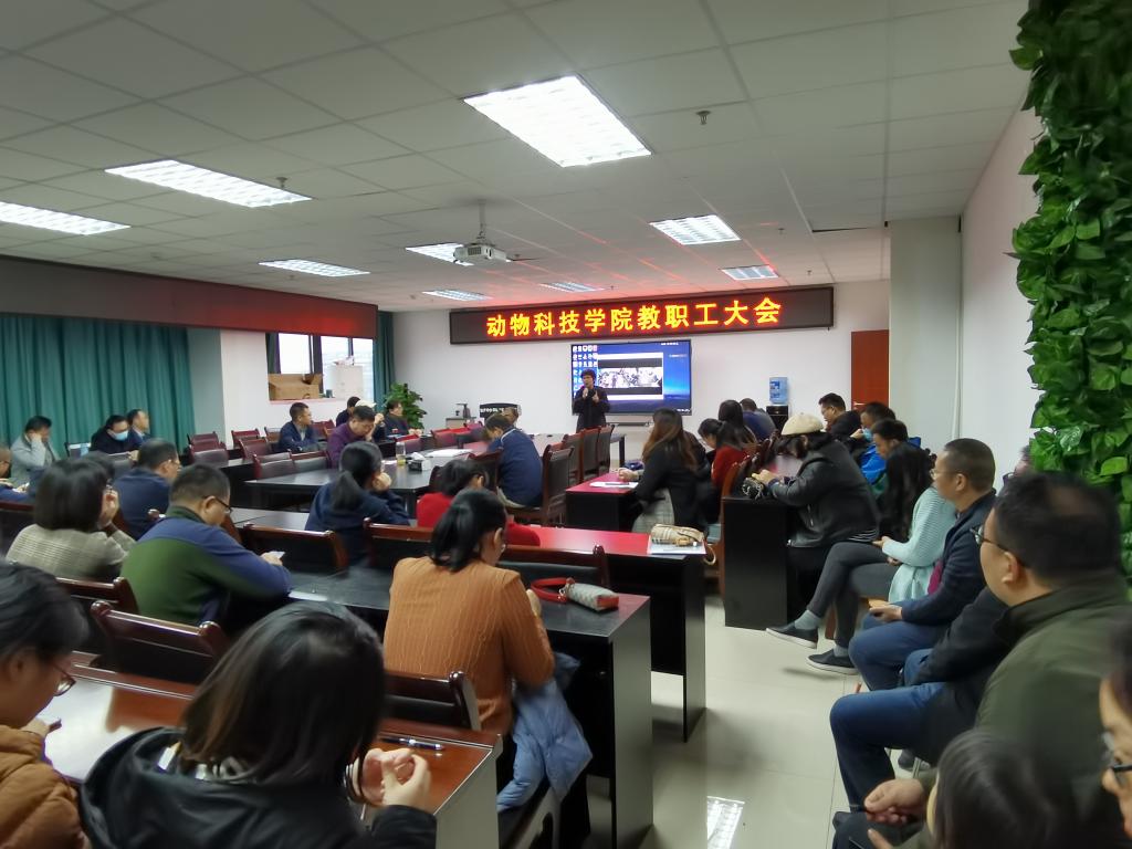 副院长王继文首先向老师们传达了学校教学专题工作会议精神,详细阐述了教育部高等教育司关于“高质量建设新农科,服务乡村全面振兴”的工作要求以及学校关于“转变教学管理观念,抓实教学管理改革”的任务安排,通报了教学运行管理中涉及的问题,并结合分管工作进行了安排部署。他重点强调了本科生专业论证、2020届毕业生论文抽检及2022届本科生毕业论文指导、规范经费使用、实验室安全管理、本科教学研讨等工作事宜,并希望全体教职工进一步强化责任担当,形成合力,高质量完成本科专业认证这一长期系统工程,共促动物科学、水产养殖学两个本科专业建设。