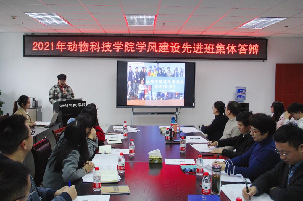 根据《学院学风建设先进班集体评选办法》,对全院大二、大三、大四3个年级22个小班学风状态数据进行统计排名,位列第一名动科201803班和第二名的水产201902班可免答辩直接获评2020-2021学年学风建设先进班集体,排名第3-11名的9个班级通过答辩角逐2020-2021学年其余4个学风建设先进班集体指标。答辩过程中,9个班级围绕学风建设的好方法、好案例、好方案、好成果进行总结汇报,最终动科201904班、水产201901班、动科202005班和水产202001班4个班级通过答辩获评学风建设先进班集体。