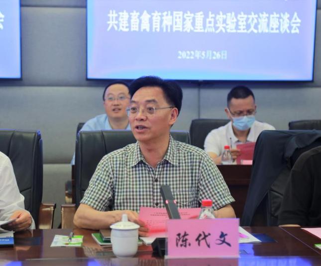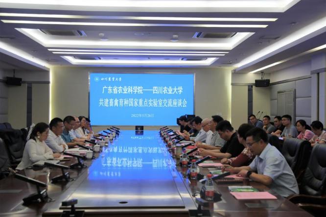 5月26日,广东省农业科学院副院长廖明一行来校,开展共建畜禽育种国家重点实验室(重组)交流。校长吴德、副校长陈代文及科技管理处、tyc522cc太阳成集团主页、动物营养研究所等单位相关负责人及专家教授参加了座谈会。陈代文主持座谈会。双方希望进一步加强合作,携手做好畜禽育种国家重点实验室重组共建。