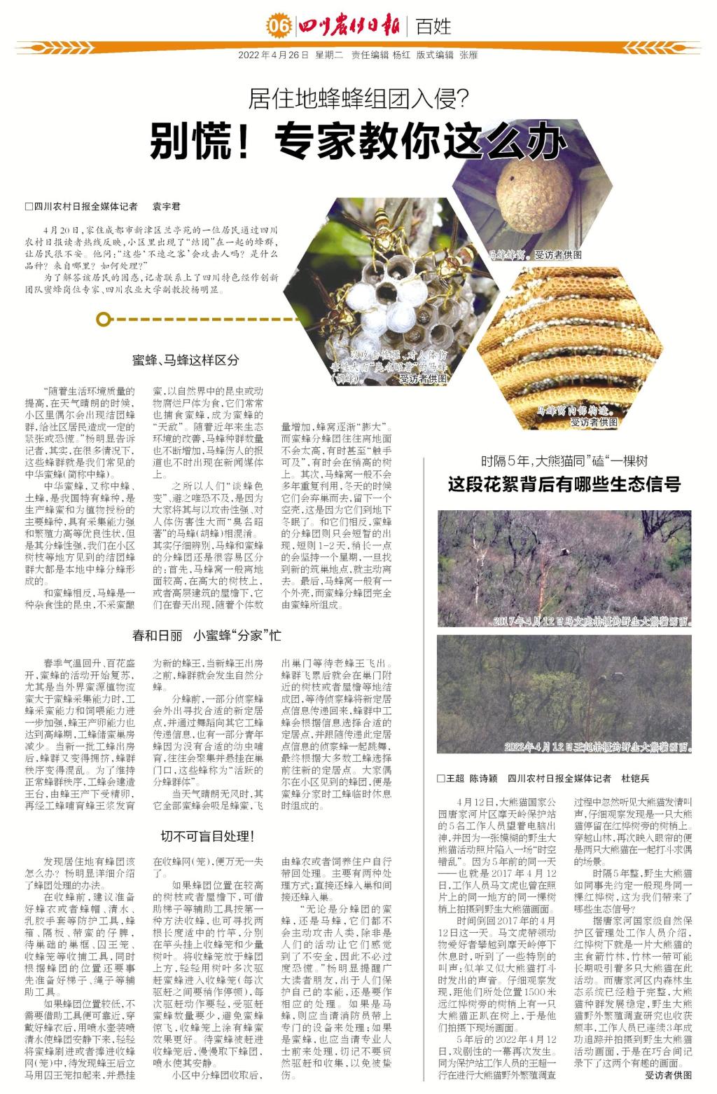 为了解答该居民的困惑,记者联系上了四川特色经作创新团队蜜蜂岗位专家、suncitygroup太阳成集团副教授杨明显。