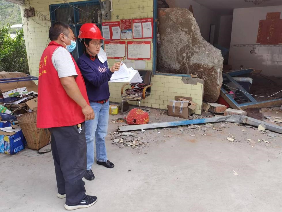 赵小玲教授(右一)在泸定县德威镇核对受损数据