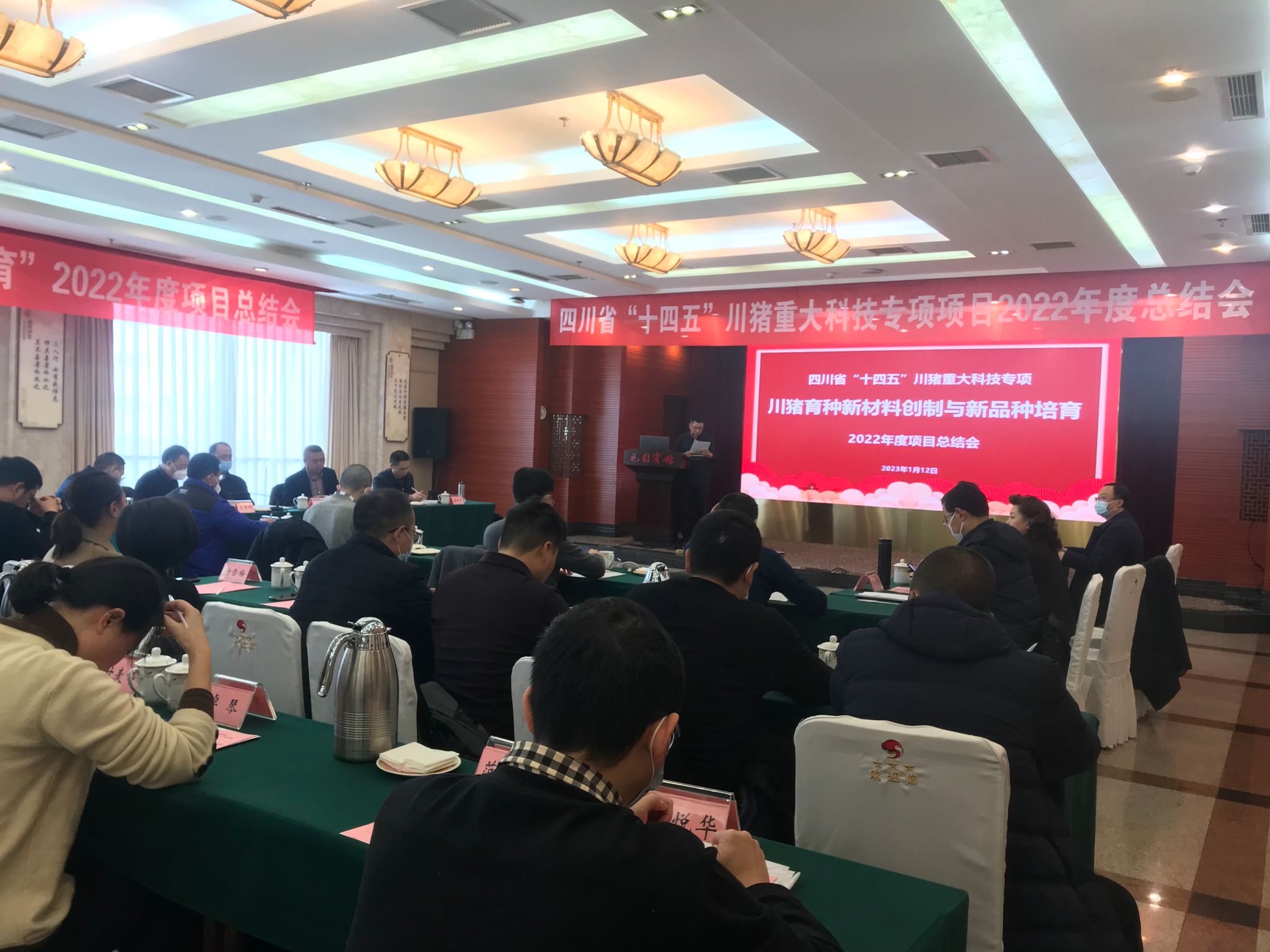 1月12日,由我校tyc522cc太阳成集团主页曾长军教授主持的四川省“十四五”川猪重大科技专项“川猪育种新材料创制与新品种培育”2022年度项目总结会在成都市锦江区花园宾馆召开。