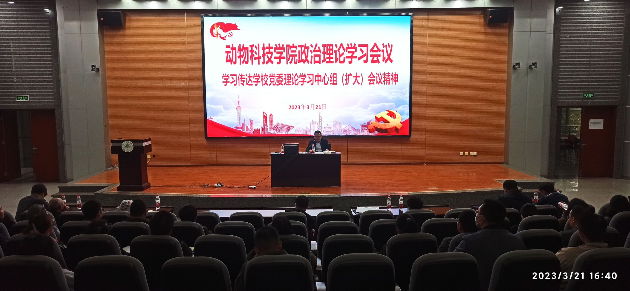 3月21日下午,学院在二教报告厅召开全院教职工政治理论学习大会,会议传达了学校党委理论学习中心组(扩大)全国两会精神专题学习会精神,解读学校最新出台的人事管理制度。 全体教职工参加会议,党委书记何桦主持会议。