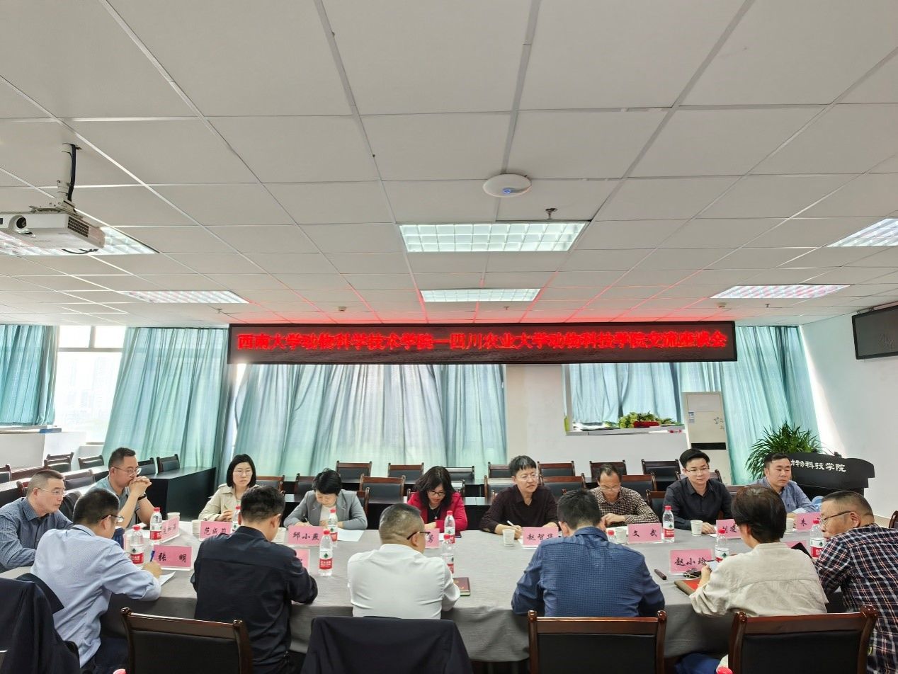 4月11日,西南大学动物科学技术学院党委书记赵智华一行9人到访动科学院,就学科建设、人才培养及实验室管理、教学科研合作及科研项目申报与成果转化等问题座谈交流。学院院长朱砺、党委书记何桦、副院长赵小玲、杨淞及系室主任参加座谈交流。会议由何桦主持。