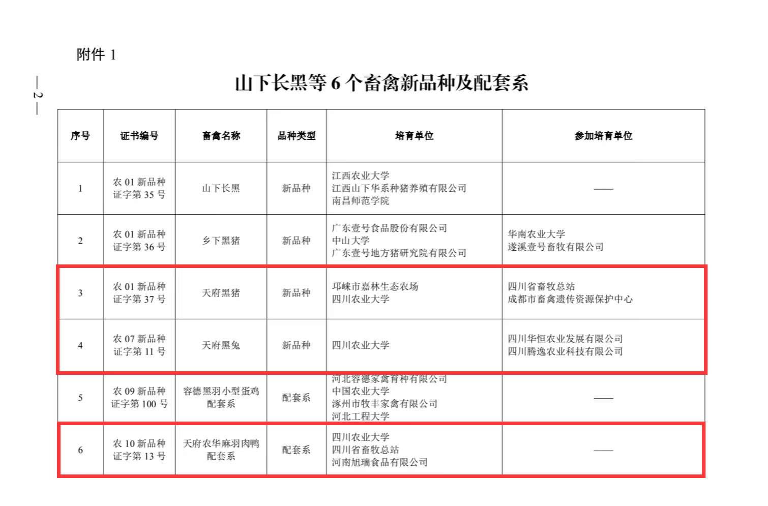 6月12日,中华人民共和国农业农村部发布第679号公告,经农业农村部国家畜禽遗传资源委员会审定并通过了6个畜禽新品种及配套系,其中我校有3个新品种(配套系)位列其中。分别为由姜延志教授主持选育的天府黑猪新品种、由王继文教授主持选育的天府农华麻羽肉鸭配套系和赖松家教授主持选育的天府黑兔新品种,为端稳大众餐桌“肉盘子”,护卫国家粮食安全提供了助力。
