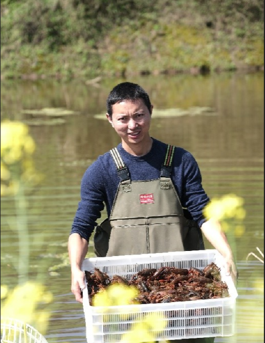 2014年毕业后杨海选择回乡创业,致力于新型水产养殖技术推广。由于家乡水产养殖产业落后,他利用自己在学校所学知识大胆创新,通过反复摸索和实践,结合川南地区的气候和土壤特点,创造了川南地区可复制可推广的“反季节错峰上市稻虾综合种养”模式,不仅提高农民种粮积极性和粮食产量,而且将稻田经济价值提高3~5倍,从亩产值1500元提高到5000~8000元。
