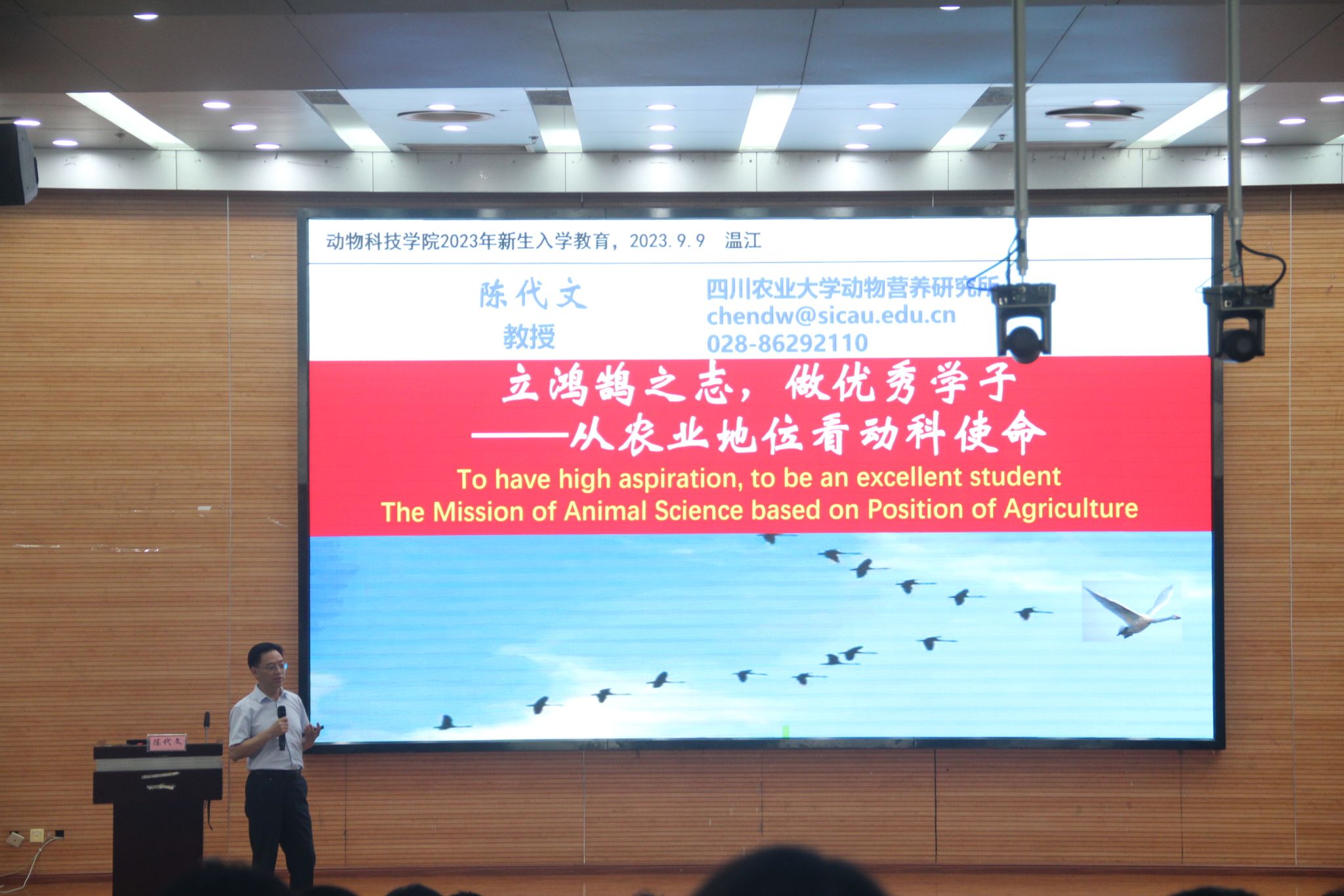9月9日-10日,tyc522cc太阳成集团主页2023级本科生、研究生新生大会和新生入学教育大会分别在第二教学楼学术报告厅和图书馆学术报告厅顺利举行。国家级教学名师陈代文教授、学院院长朱砺、学院党委书记何桦、学院副院长杨淞、学院副院长赵小玲、水产养殖系主任陈德芳、动物科学系主任张明、学院行政办公室主任孙贤刚、学院党委办、行政办老师、专业老师、新生班主任、各小班班助驻党同学以及2023级新生出席本次大会。大会由赵小玲主持。