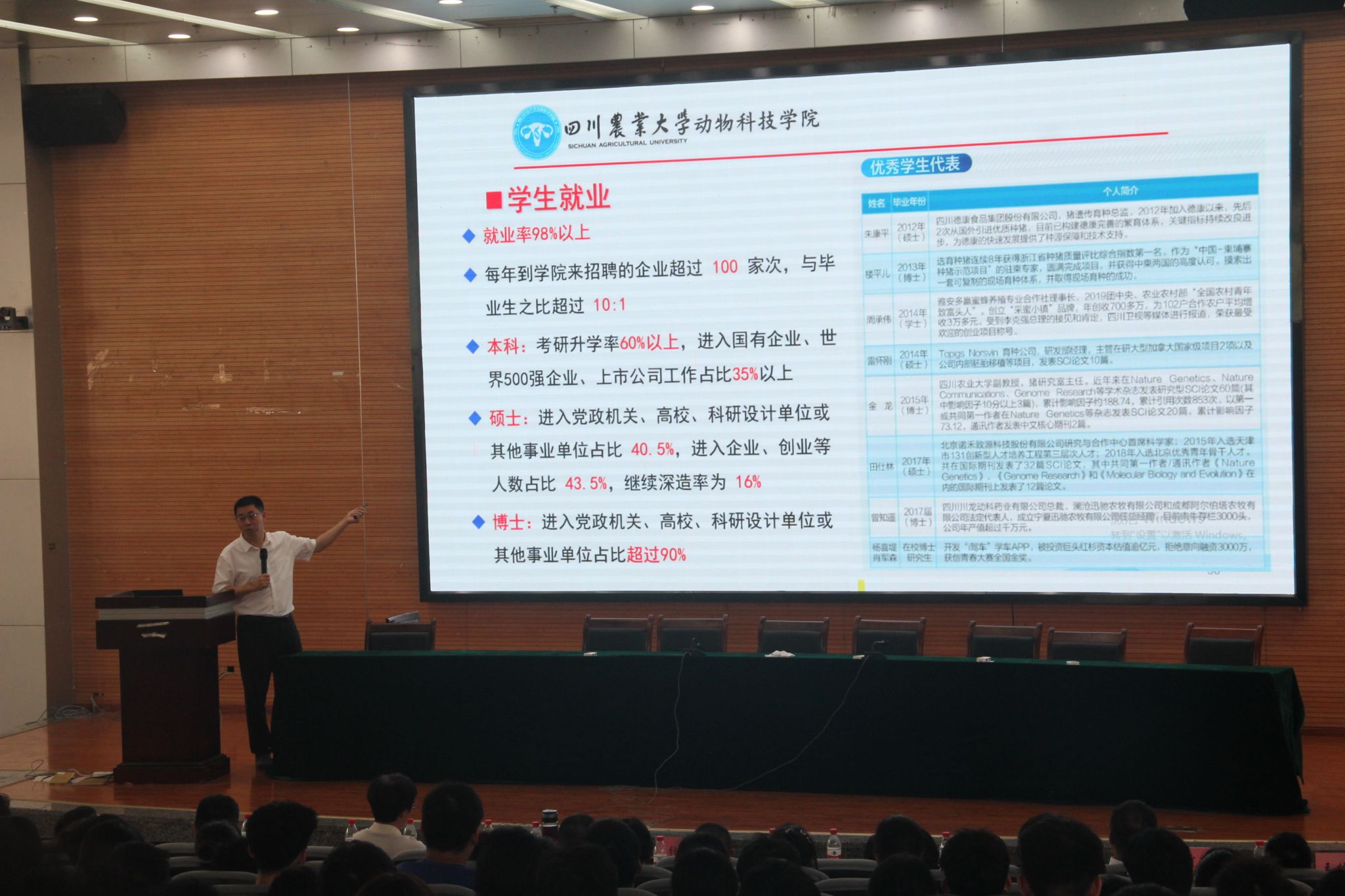 朱砺向新生介绍了suncitygroup太阳成集团的百年悠久办学历史、tyc522cc太阳成集团主页的基本情况以及动物科学专业情况,并对全体2023级新生提出了殷切期望,他表示:“历史悠久、教学科研实力雄厚的动科院为同学们提供了广阔的舞台与无限的机会,希望全体新生明确奋斗目标,静心学习、潜心钻研、全面发展,成为国家所需要的高层次人才。”杨淞向新生介绍了水产养殖学专业情况,“孕育30年”、“奠基12年”、“快速发展11年”、“飞跃发展”,这几个部分带领新生回顾了学院水产养殖学专业一步步发展壮大的历程,祝愿大家学有所成,“鱼”生幸福!