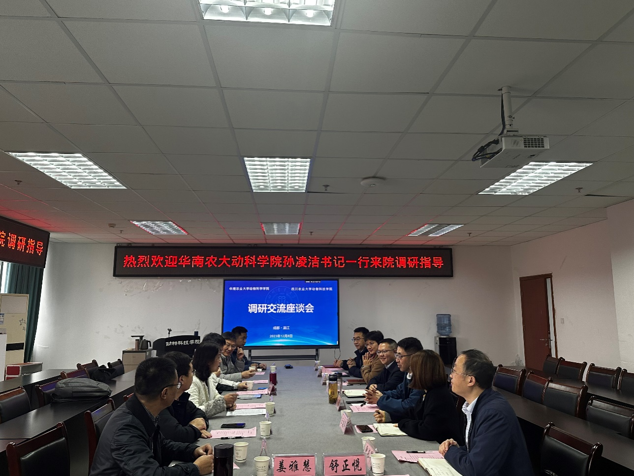 12月7-8日,华南农业大学动物科学学院党委书记孙凌洁一行6人来校调研交流,动科学院党委书记何桦,院长朱砺,副院长赵小玲及相关系室中心负责人参加座谈会。何桦主持会议。