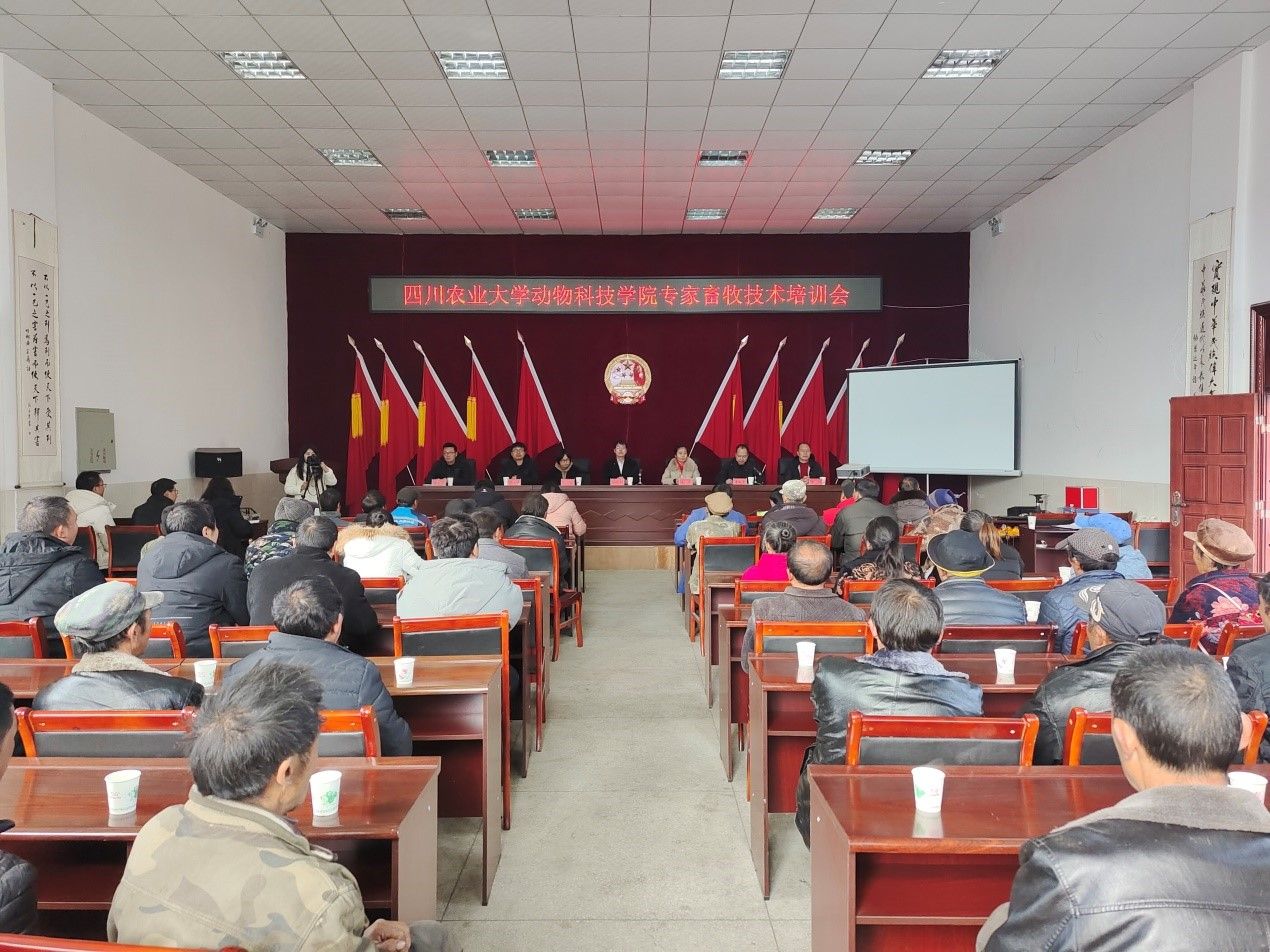 与此同时,在汉源县马烈乡,牛、兔课题组王杰副教授带领团队成员牛丽莉和孙文强深入农户指导肉牛冬季管理和饲草料贮备,尤其是对如何提高冬季肉牛养殖效率的问题进行了详细的交流指导。随后,团队应县政协副主席耿俊杰、乡政府党委书记李俊平的邀请,以“肉用母牛的饲养管理”“现代肉牛生产技术”“猪的高效繁殖技术”为题,为汉源县广大养殖户进行了深入浅出的养殖技术培训,为当地肉牛和猪养殖业的提质增效提供了强有力的技术支撑。