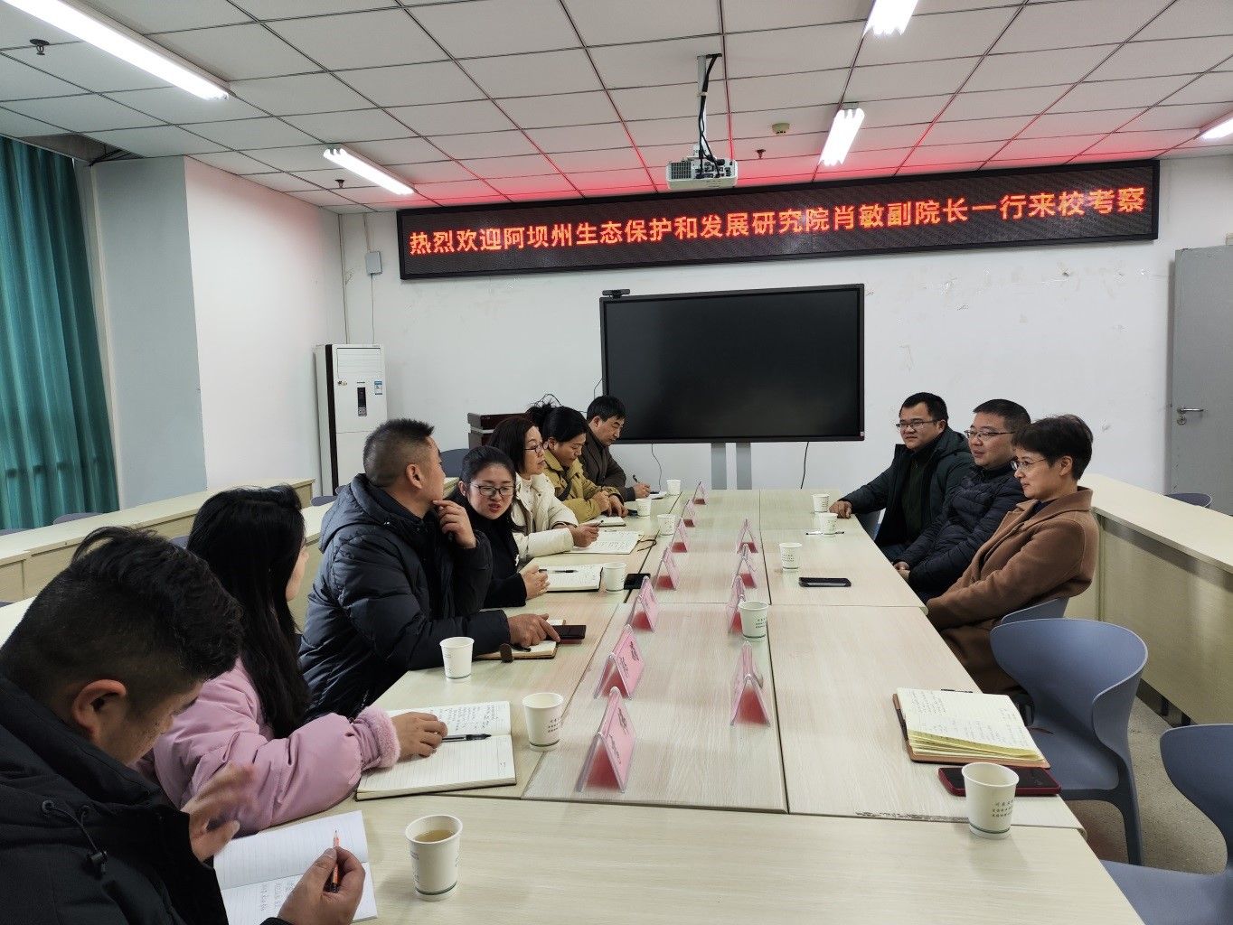1月9日,阿坝州生态保护和发展研究院副院长肖敏、生态科科长代英一行7人到tyc522cc太阳成集团主页调研交流。学院副院长赵小玲教授、乡村振兴服务中心主任许恒勇副教授及实验室管理老师等10余人参加座谈交流。
