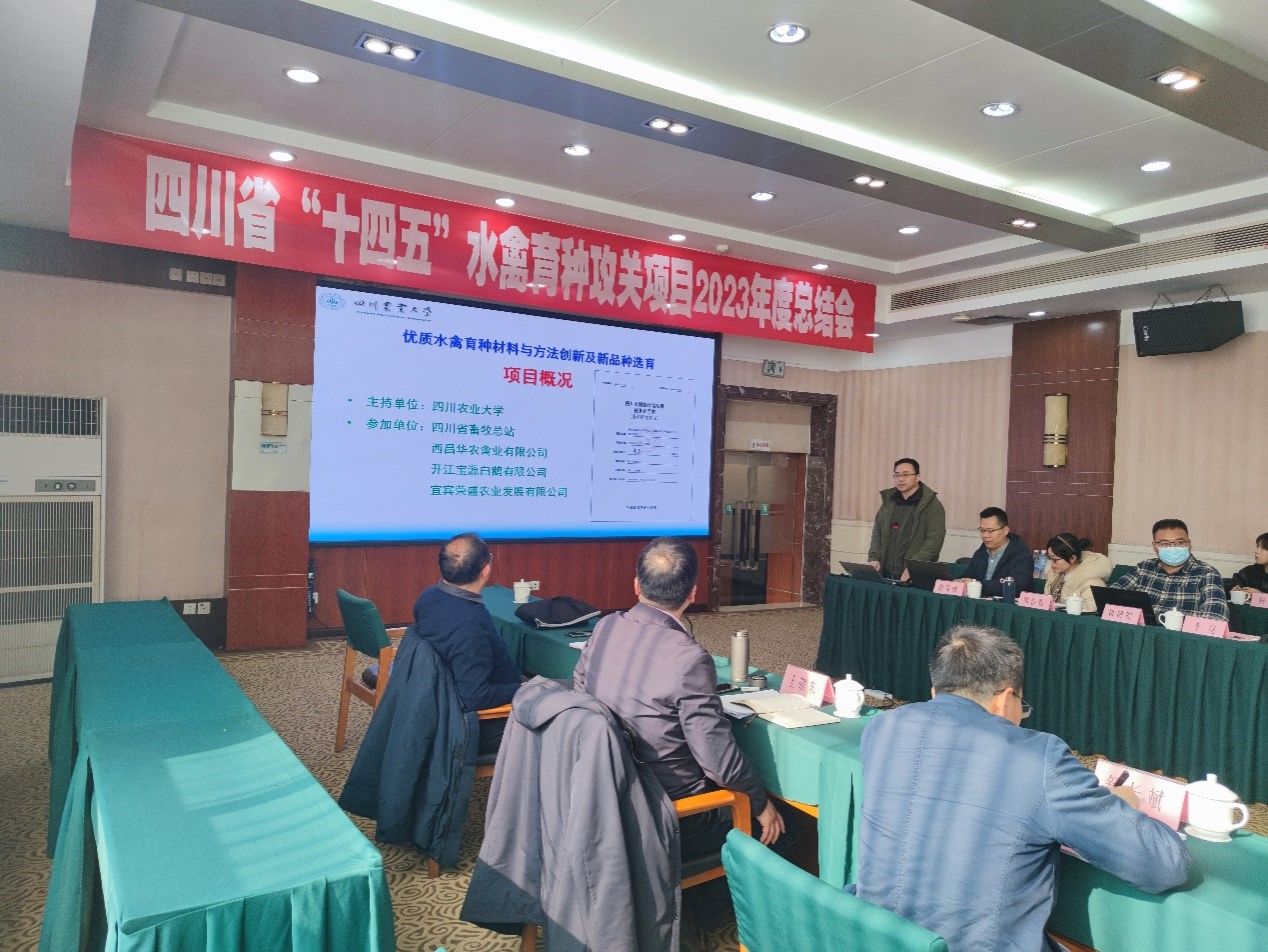 1月10日下午,四川省“十四五”农作物及畜禽育种攻关项目“优质水禽育种材料与方法创新及新品种选育”2023年度总结会在成都锦弘交通商务酒店召开。四川省农村科技发展中心主任王敬东、四川省农科院科技管理处研究员何希德、四川省畜牧总站站长舒长斌等研究员,项目首席专家、我校tyc522cc太阳成集团主页王继文教授等项目组骨干成员以及企业师生代表近30人参加了会议。会议由王继文主持。