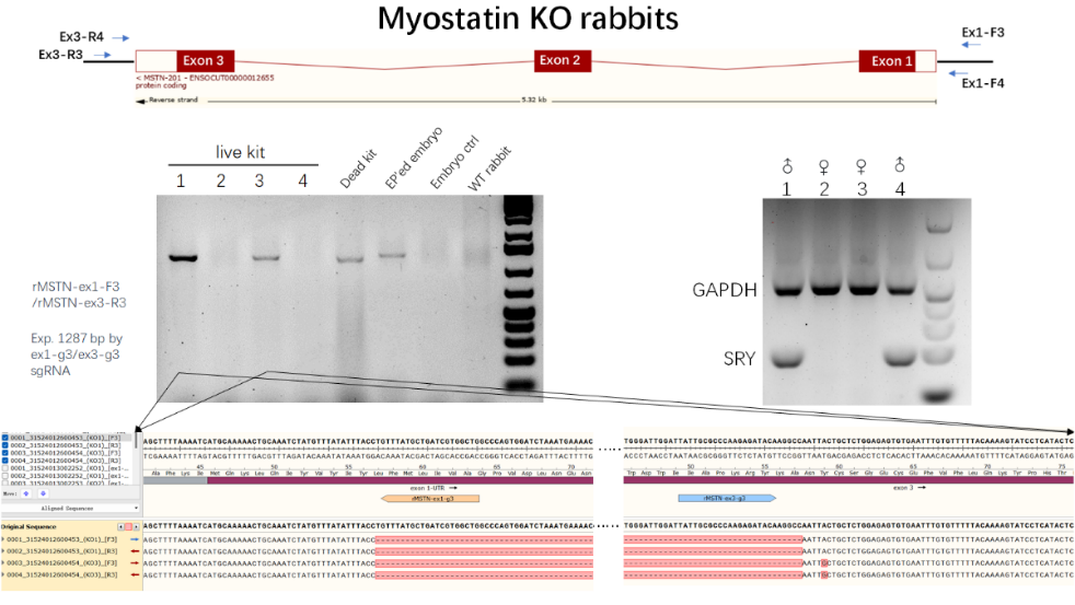 团队在多年研究的基础上发现基因组精准编辑技术能在分子层面上精确调控兔子的肉质特性,显著加速新育种素材的开发。但以往的基因编辑技术需要通过显微注射将编辑组件引入受精卵,这一过程不仅操作复杂、成本高昂,而且技术难度大。为破解这一难题,自2023年12月起,牛兔遗传育种团队联合成都碧傲竞生物科技有限公司,共同研发了“电转法”基因编辑技术,并成功在兔子的MSTN(肌肉生长抑制因子)基因上实现了敲除。
