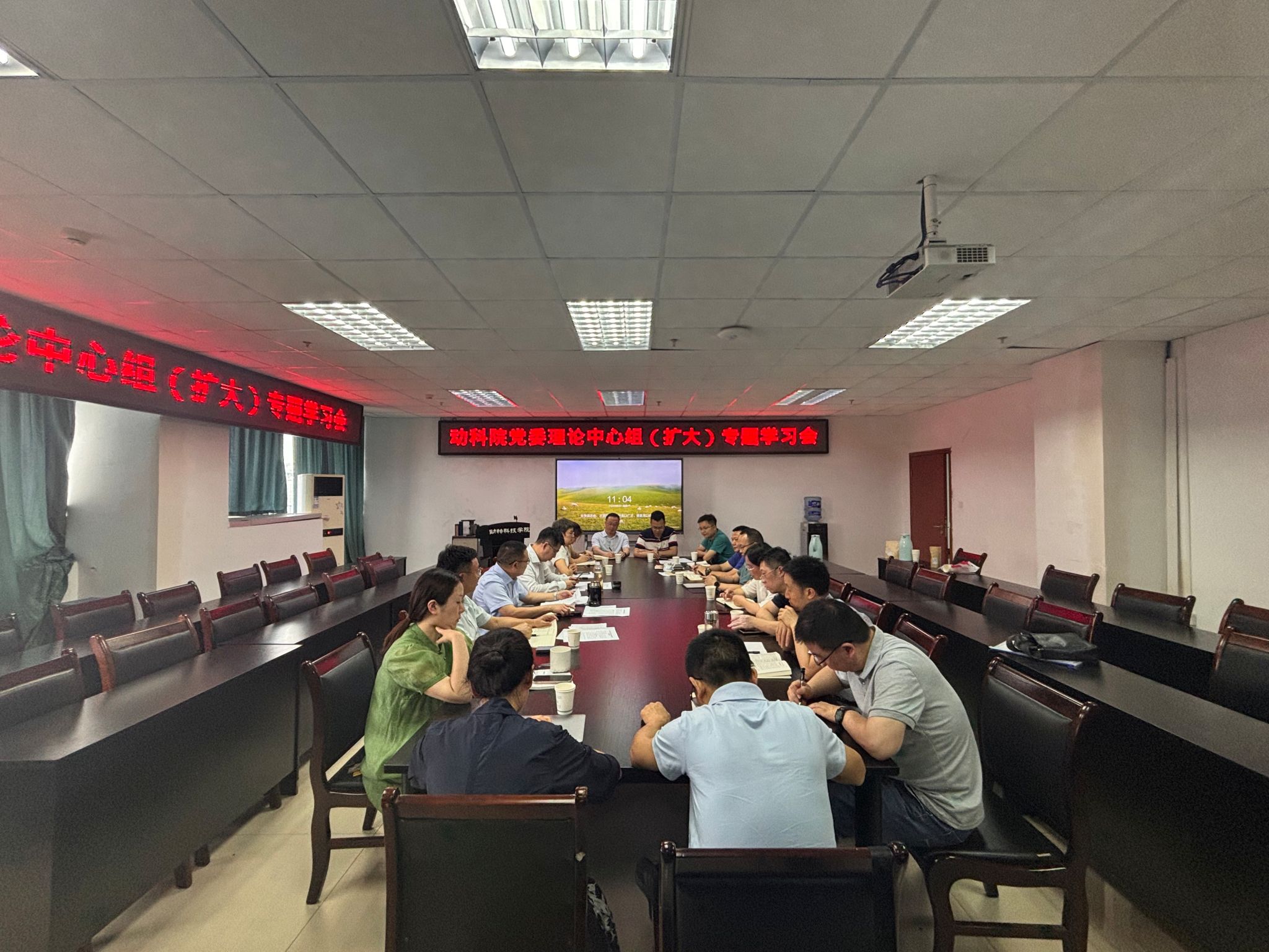 院党委中心组成员,各系室中心主任、国重专职秘书参加会议。会议由党委书记何桦主持。