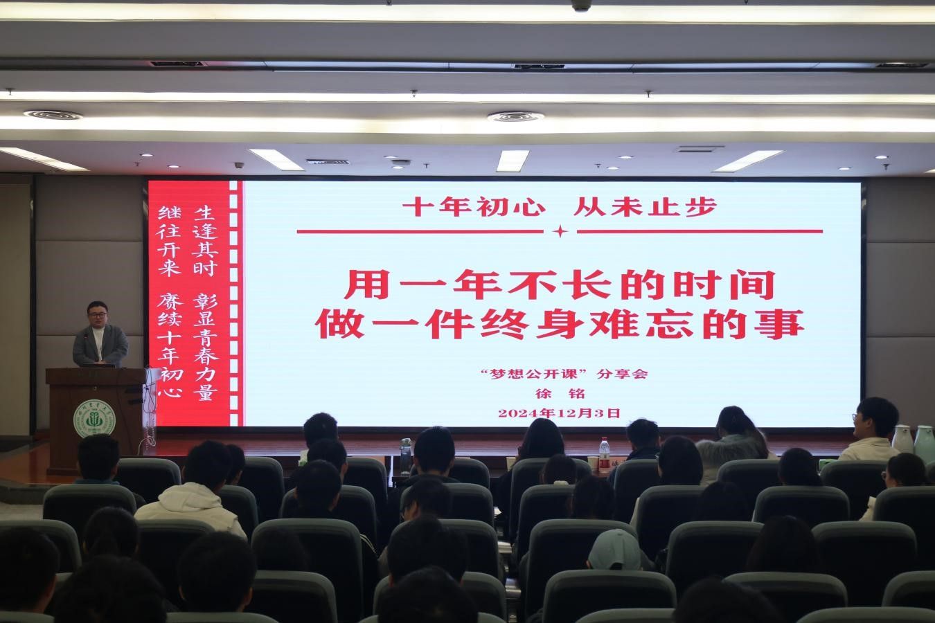 为进一步拓宽学生视野,激发创新思维,强化优秀学生示范引领与辐射作用。学院于12月3日下午在图书馆二楼报告厅举办了“梦想公开课”高年级同学分享成长故事主题活动。本次活动共吸引100余名同学参加,现场互动频繁,交流氛围热烈。