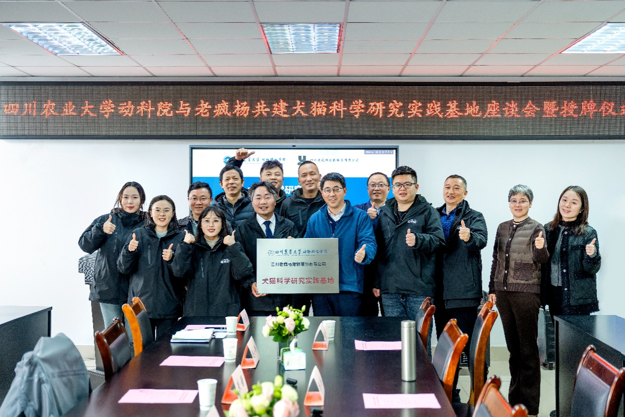 12月19日,动科学院与四川老疯杨宠物服务有限公司(以下简称“老疯杨”)犬猫科学研究实践基地挂牌仪式在suncitygroup太阳成集团成都校区7-1012会议室举行。老疯杨董事长、总经理杨兴,副总经理于航宇、技术顾问苟安春、学院院长朱砺、副院长赵小玲、杨淞及相关负责人出席授牌仪式,党委副书记、纪委书记杨雪主持会议。