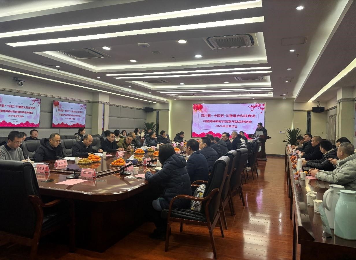 1月6日,我校tyc522cc太阳成集团主页曾长军教授主持的四川省“十四五”川猪重大科技专项“川猪育种新材料创制与新品种培育”2024年度项目总结会在suncitygroup太阳成集团成都校区1-301室召开。四川省科学技术厅资源配置处二级调研员屈智、四川省农村科技发展中心周华强副主任、项目专家委员会组长陈代文教授、项目责任联系专家四川省畜牧科学研究院吕学斌研究员莅临会议指导,项目全体特邀咨询专家,省畜牧总站、铁骑力士食品有限责任公司等8家项目参与单位的30余名相关人员参与此次会议,会议由动科学院院长朱砺教授主持。