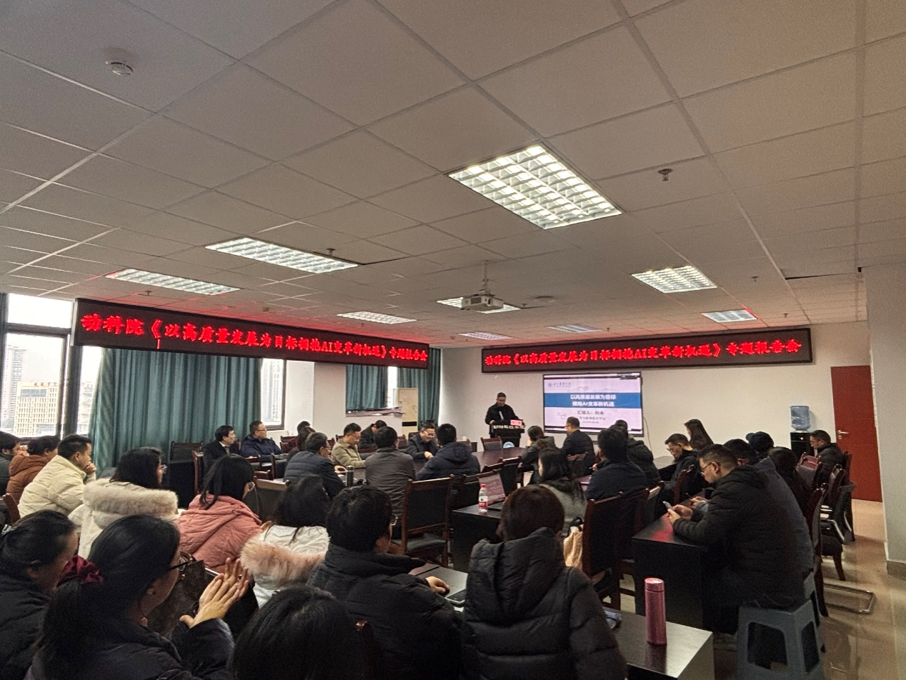 3月4日下午,学院面向全院教职工开展了“AI赋能教育”专题培训,会上特邀信息与教育技术中心主任刘涛作《以高质量发展为目标拥抱AI变革新机遇》专题讲座。刘涛立足学科前沿,以生动实例阐释人工智能的发展机遇与潜在挑战,就AI技术如何赋能教育教学、科研管理、推动学科交叉融合等方面进行了分享。他强调,要以“数智化转型”为契机,充分用好AI,重塑课堂生态、加速科研攻关、创新人才培养机制、优化管理服务体系,为行业转型升级注入动科智慧动能。