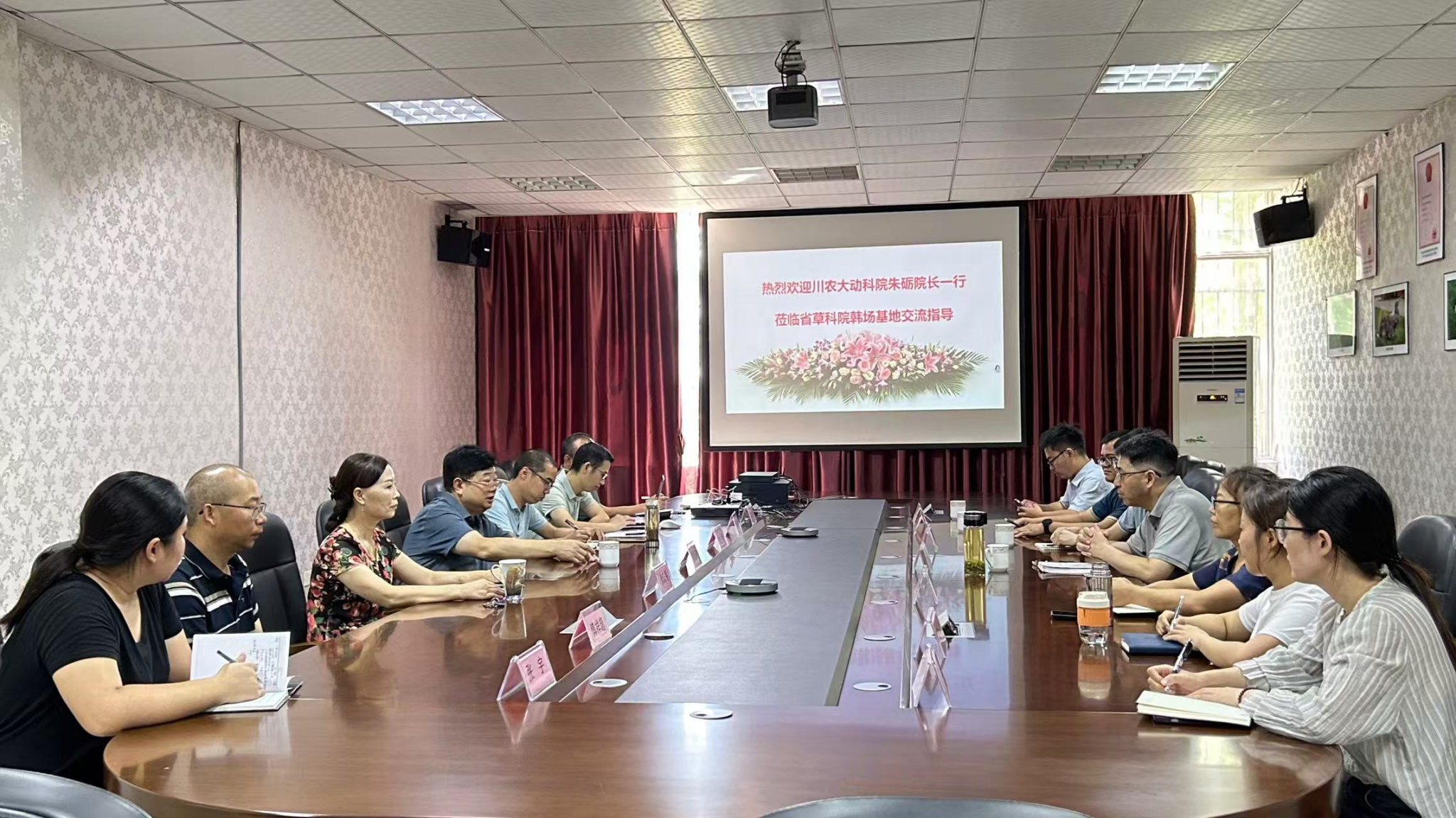 8月19日,学院院长朱砺教授率兔遗传育种团队,前往四川省草原科学研究院开展现代生物育种技术交流与合作洽谈。四川省草原科学研究院党委书记、副院长刘汉中研究员,獭兔研究所所长文斌,副所长张凯、刘宁参与座谈。