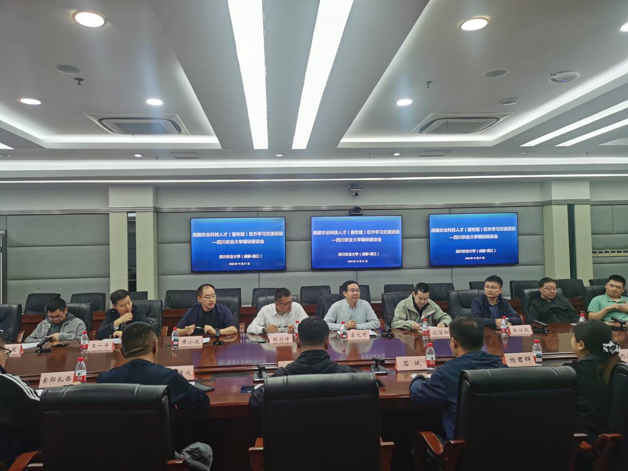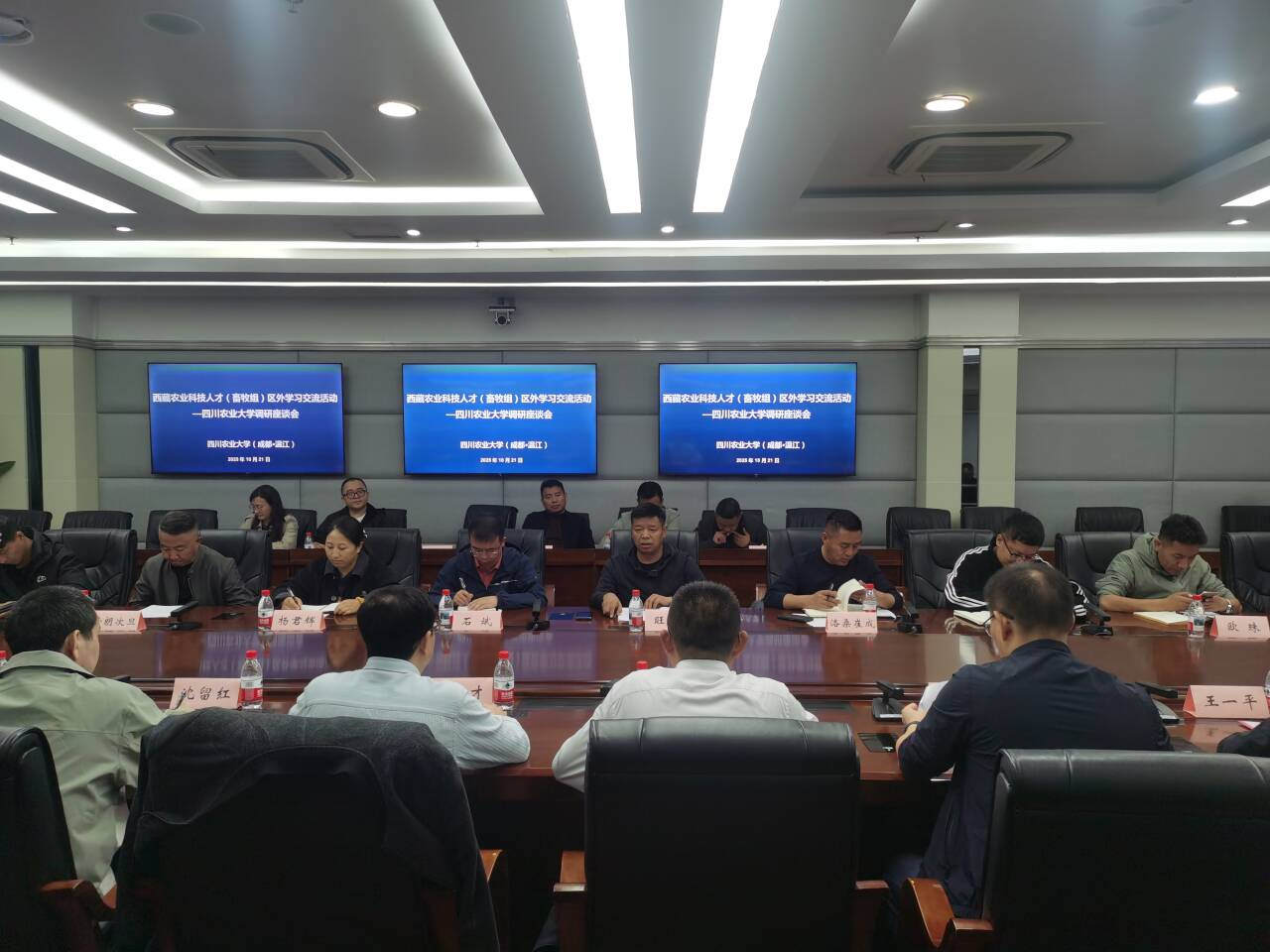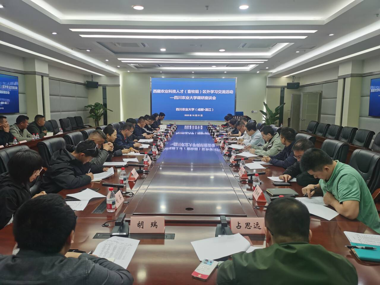 10月21日,西藏自治区农业农村厅组织全区17位畜牧科技人才赴suncitygroup太阳成集团开展学习参访和交流活动。我校乡村振兴学院、tyc522cc太阳成集团主页、动物医学院和动物营养研究所共14位教师代表参加交流座谈。会议由乡村振兴学院副院长胡剑锋主持。