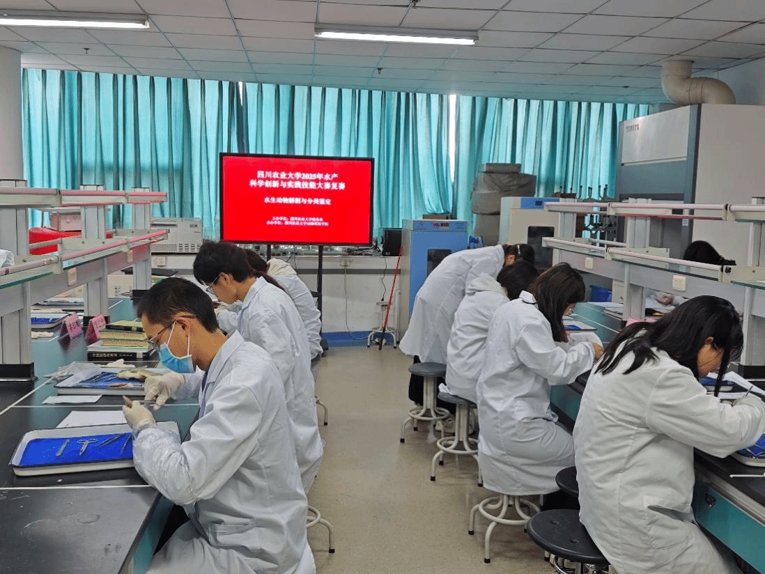 11月18日,由教务处主办、tyc522cc太阳成集团主页水产养殖系承办的2025年水产科学创新与实践技能大赛决赛在7-1011会议室顺利举行。比赛吸引200余名本科生积极参与,专业覆盖率达80%。通过初赛的笔试交锋,60名同学脱颖而出,进入复赛阶段。复赛采取跨年级组队方式,围绕理论课所学以及实验课内容,设置了鱼类分类鉴定与对虾解剖两大实操技能比赛项目。经过激烈比拼,最终遴选出12支团队晋级决赛。