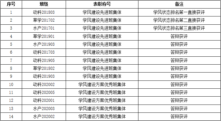 经符合参评条件的班级自愿申请,学院组织公开答辩,共评选出9个“学风建设先进班集体”、5个“学风建设方案优秀班集体”,现将具体名单公示如下: