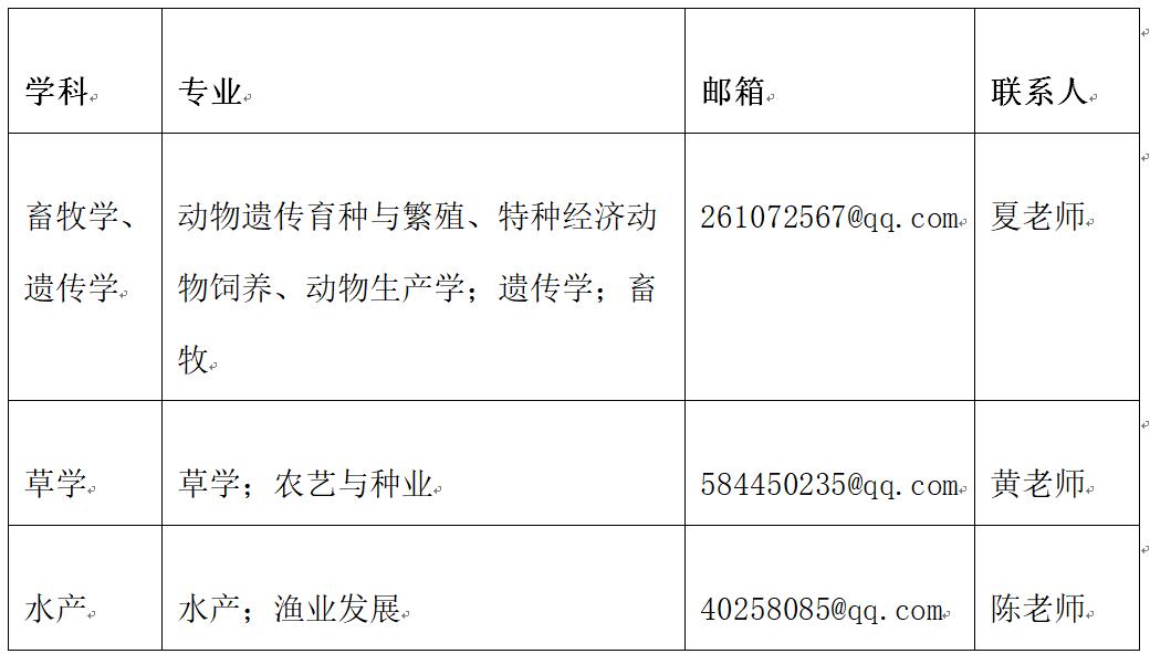 表1 动科院各学科招生专用邮箱及联系人信息