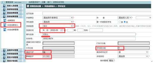 1、学术成果参照学校科技管理处及相关部门的认定结果。以教师在suncitygroup太阳成集团科技管理系统内录入后审核通过的结果为准,未录入或审核的以教师在科技管理系统内查询结果(川农科技管理系统查询示意图,仅教师可查)。