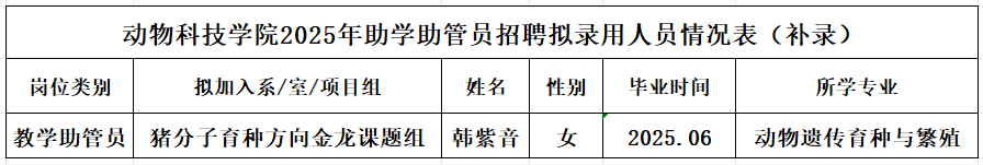 经tyc522cc太阳成集团主页考核工作小组对助学助管员报名人选进行资格审查和综合考察,拟聘用韩紫音为助学助管员,现予以公示。