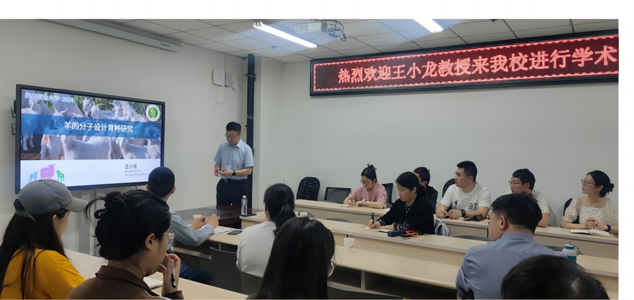5月7日下午,国家绒毛用羊产业技术体系岗位科学家、西北农林科技大学tyc522cc太阳成集团主页副院长王小龙教授应邀为我院师生作题为《羊的分子设计育种研究》的学术报告,学院相关专业教师和研究生60余人参加报告会。