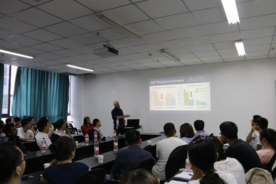11日上午,Wilson教授与Cobb博士为全校师生做了题为“Mycorrhizas in grasslands and agroecosystems”的主题报告,向大家详细介绍了土壤地下微生物、特别是丛枝菌根真菌(Arbuscular Mycorrhizal Fungi)在退化草地恢复及可持续牧草及农业生产发展中的重要地位。这种存在于宿主植物及土壤微生物间特殊的互利共生关系,不仅可以促进植物吸收营养、增加土壤的养分水平,而且可为今后的牧草或作物育种提供新的研究方向。