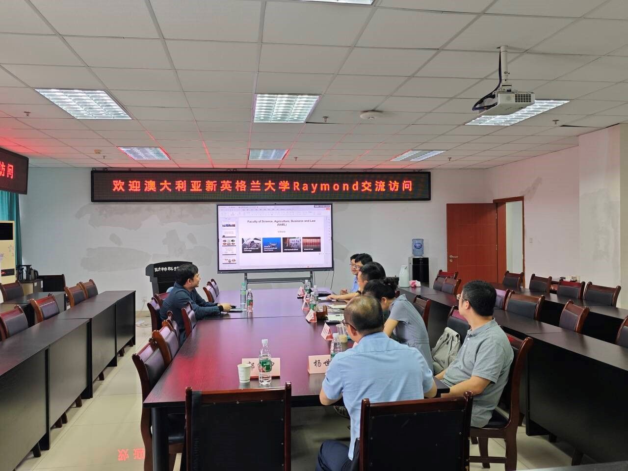会上Raymond教授介绍了新英格兰大学农业商学与法律学院的分布、专业设置、课程设置,重点介绍了动物科学的研究方法,AI应用等内容。杨淞介绍了川农大动科学院的专业设置、研究生学制及培养方式,主修课程以及学院的主要科研成果和研究方向。