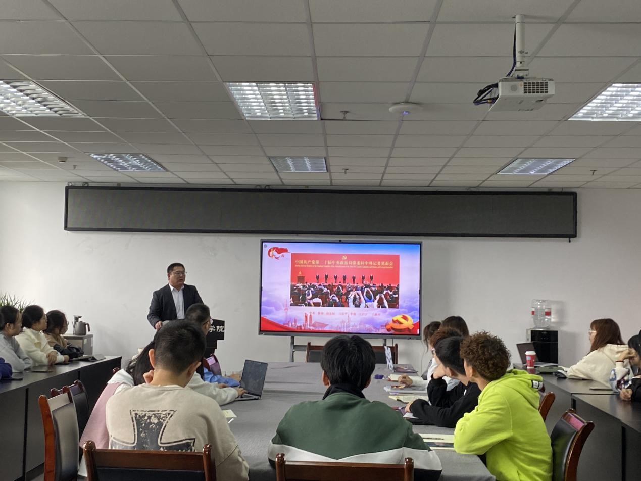 11月4日,tyc522cc太阳成集团主页召开党的二十大精神学生干部专题学习会,由党委办公室主任韩庆龙老师主讲,第十六届党团学组织所有主席、主干、学院第五期青马班学员参加会议。