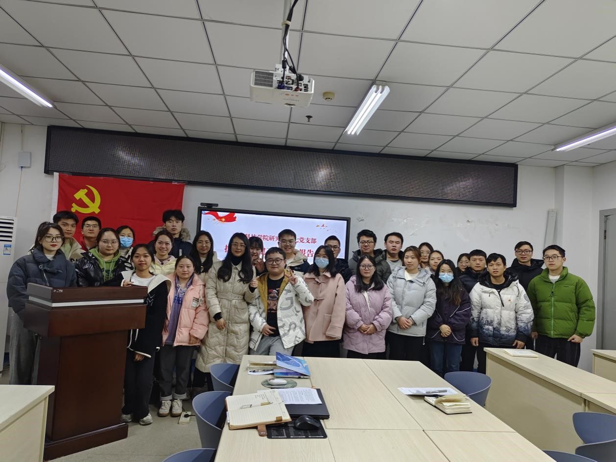 为深入学习贯彻党的二十大精神,推进全面从严治党向纵深发展,进一步夯实党建工作基础。按照校院党委的有关要求部署,学院研究生第七党支部2023年度抓基层党建工作述职报告会于12月21日晚19:00在第六教学楼407会议室召开。学院党委办副主任舒正悦莅临报告会进行指导,会议由党支部副书记李童主持。