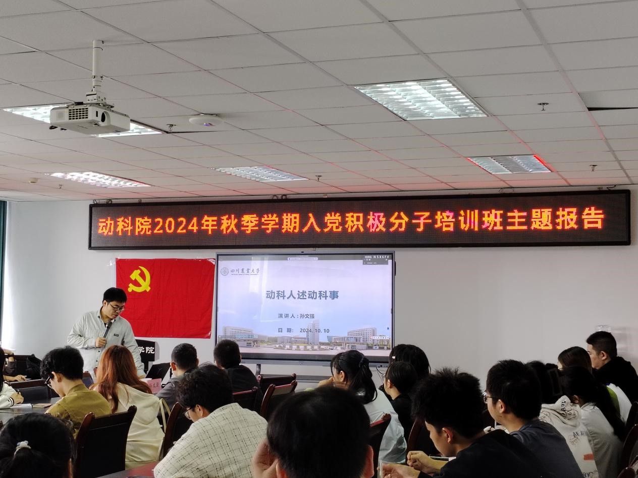 院工会副主席孙文强以“动科人述动科事”为题,结合亲身经历为入党积极分子从使命、责任两个部分开展讲述。他谈到党员身上肩负着三个责任,一是要持续学习与提升,紧跟新时代科技发展步伐,进一步加强专业素养;二是要树立国际视野,结合国情省情推动农业农村发展;三是把弘扬科学家精神和党的伟大精神有机结合起来,在理论学习和实践过程中守初心、担使命、作贡献。