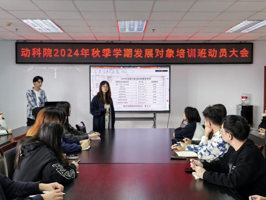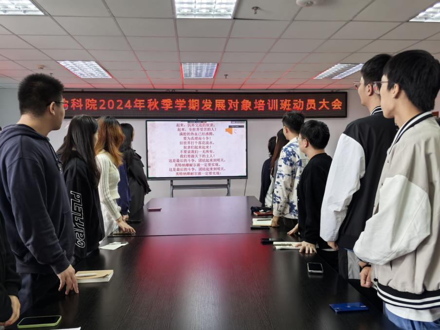 为进一步提高发展对象的思想政治觉悟和党性修养,教育引导广大发展对象端正入党动机、严守政治纪律、坚定入党信心,扎实开展发展对象培训工作,10月25日,tyc522cc太阳成集团主页于7-1011会议室召开2024年秋季学期发展对象培训班动员大会,34名发展对象参加会议。本次动员大会由党委办公室副主任,团委副书记舒正悦老师主持。