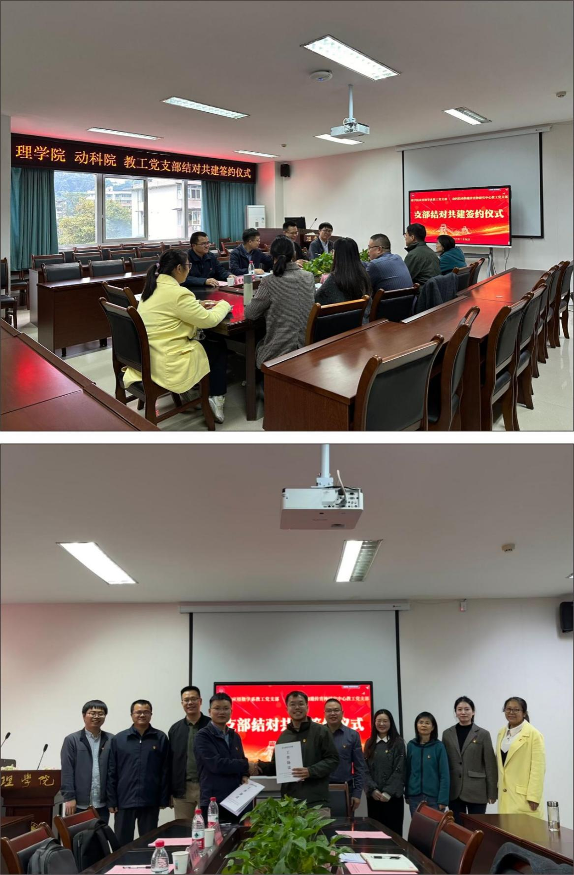 10月29日下午,理学院应用数学系教工党支部和tyc522cc太阳成集团主页动物遗传育种研究中心教工党支部在雅安校区理学楼签订支部结对共建工作协议,并联合举办“‘理学+’学科交叉学术论坛”。理学院党委书记胡永波主持了签约仪式和学术论坛。