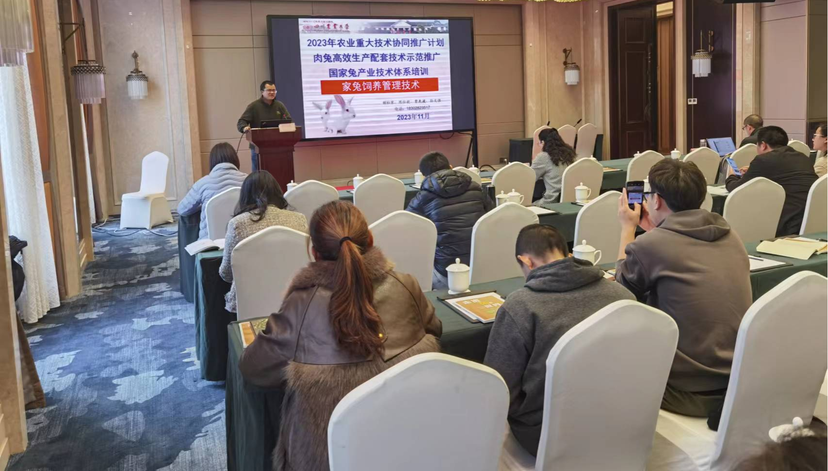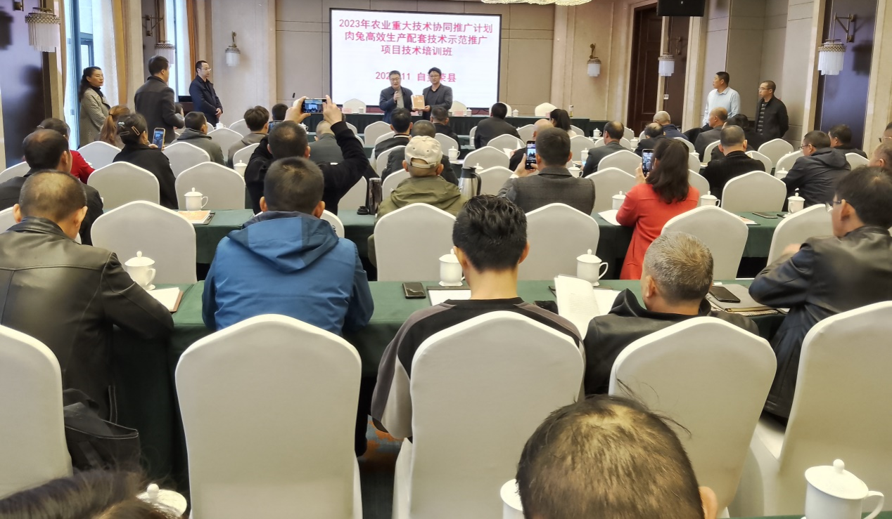 为进一步促进我省肉兔产业发展,提高肉兔养殖现代化水平,11月28-29日,动科学院联合四川省畜牧总站、四川省草原科学研究院和荣县农业农村局在自贡市荣县举办肉兔高效繁殖和饲养管理技术培训班。自贡市农业农村局、荣县农业农村局及其乡(镇)畜牧负责人及技术骨干、全县养殖户等100余人参加培训班。