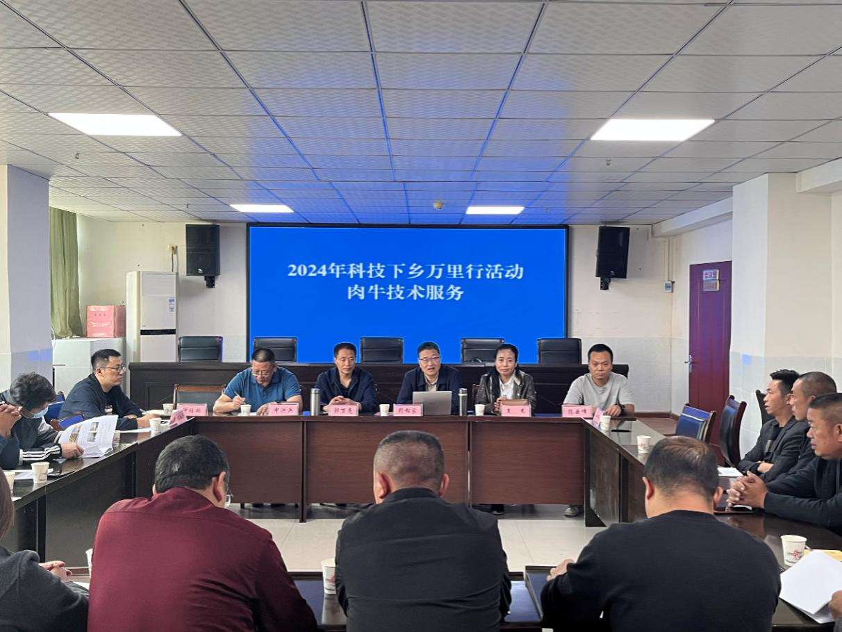 服务期间,团队一行还在兴文县畜牧水产业发展服务中心10楼会议室举办肉牛养殖技术培训和交流会。会上,赖松家教授介绍了架子牛运输应激预防和引进牛只饲养管理技术,尤其提到牛只起运前一天,要饲喂黄芪多糖,注射Vc。牛只到场后,要以恢复体力体质为主,逐步添加干草和饲料饲喂等关键技术。王杰副教授就牛场建设的相关问题做了详细讲解,并重点讲解了发酵床建设的关键技术。申洪兵研究员在会上谈到,养殖户要根据不同年龄、不同体重肉牛的生理、消化特点来配制不同水平TMR肉牛日粮,注重精准化饲喂与精细化管理有机结合。最后,兴文县畜牧水产业发展服务中心主任郭万亮作总结发言。