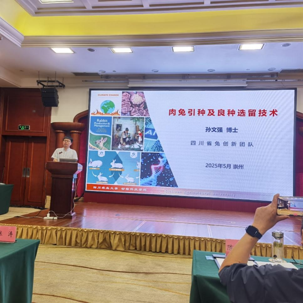为提升地方肉兔养殖水平,近日,四川省兔创新团队成员、tyc522cc太阳成集团主页贾先波副教授、孙文强博士以及动物营养所田刚教授组团赴崇州参加国家现代农业产业技术体系四川兔创新团队现场会,孙文强博士受邀开展“肉兔引种及良种选留技术”培训,为当地养殖企业和养殖户提供实用化的技术服务。