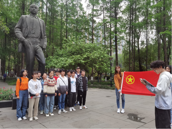 青马班的同学们在雕塑前朗诵王光祈的《去国辞》诗