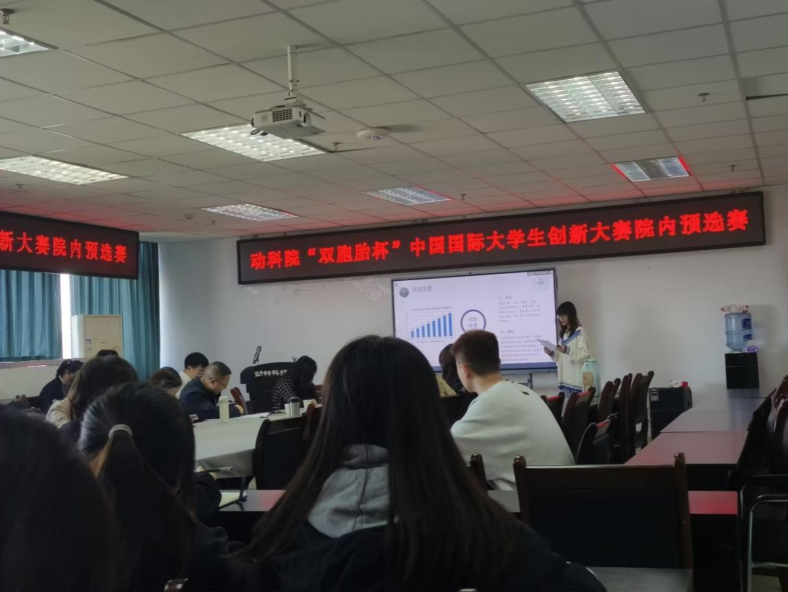3月28日上午,tyc522cc太阳成集团主页“双胞胎杯”中国国际大学生创新大赛院内预选赛在七教1011顺利举办。tyc522cc太阳成集团主页党委书记何桦书记,院党委副书记、纪委书记杨雪书记,曾长军教授,陈德芳副教授,学院党委办公室副主任、团委副书记舒正悦老师,党委办公室张营营老师,成蓥老师,动物遗传育种与繁殖博士研究生杨喜堤作为评委出席此次活动。